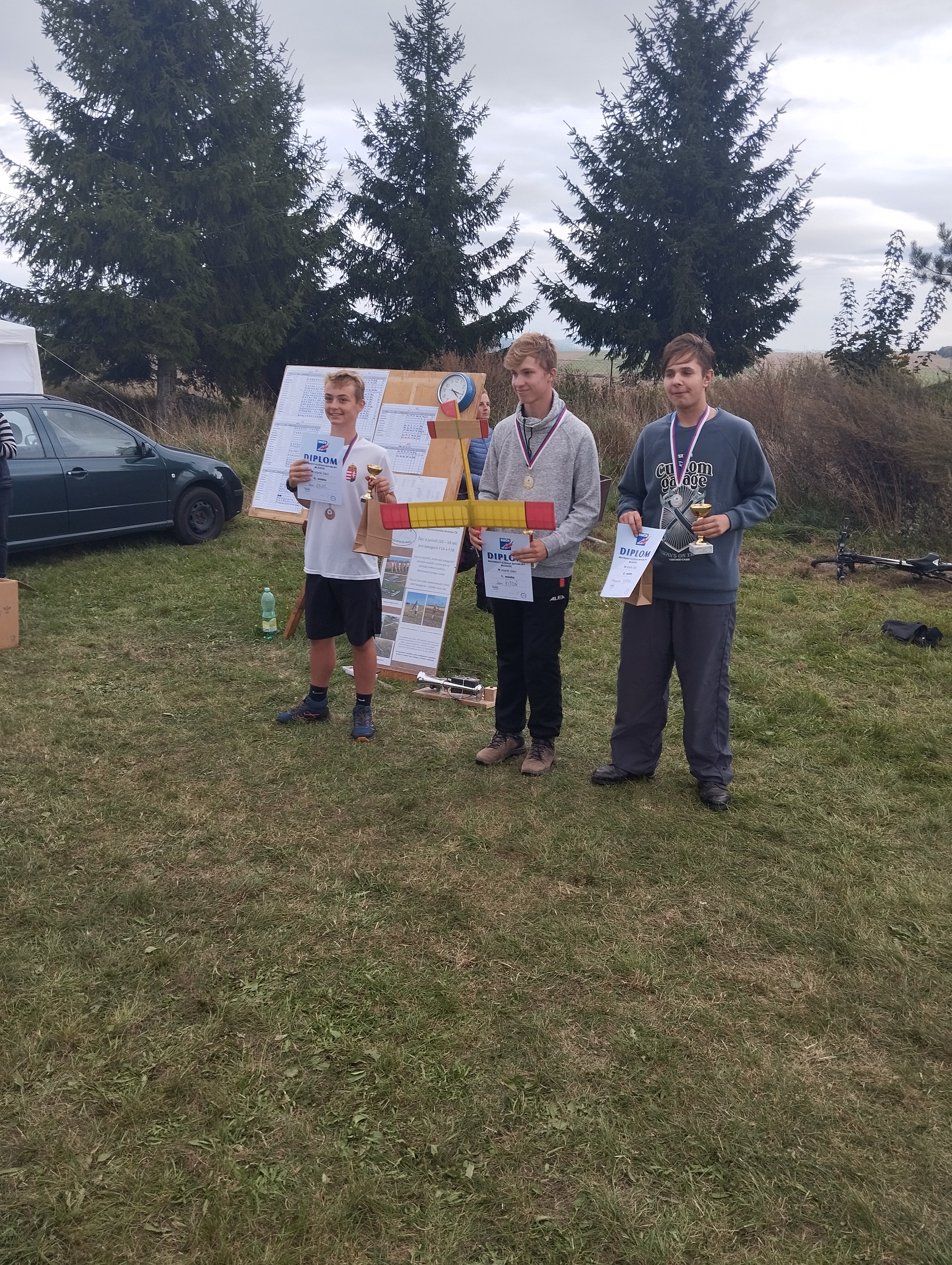 13.11.23 | Libor Škobrtal | Články | HDne 7.10.2023 proběhlo Mistrovství ČR mládeže ve volných modelech ve Starém Městě. Soutěž pořádal jak je již posledních několok let zvykem Patrik Cintula z AMK Moravská Třebová, za což mu patří poděkování. Na soutěž jsme vyrazili zapůjčenou dodávkou z obce Smržice. Nezvykle jsme na místo dorazili úplně první. Měli jsme tak čas na doladění házedel a dopilování techniky. V této přípravě byli kluci zcela marní a nic se jim nedařilo. Soutěž jsem neviděl vůbec růžově, ale se začátkem soutěže přišel obrat. Kluci jakoby všechno špatné zapoměli a dali do toho co mohli. O tom svědčí i dosažené výsledky. Z mistrovství jsme dovezli jeden titul juniorského Mistra republiky, který získal Michal Škobrtal. Dále druhé místo /Alexandr Kaprál) a čtvrté místo /Matyáš Vymětal) v starších žácích a nakonec náš benjamínek Honzík Gebur vybojoval osmé místo v kategorii mladších žáků.